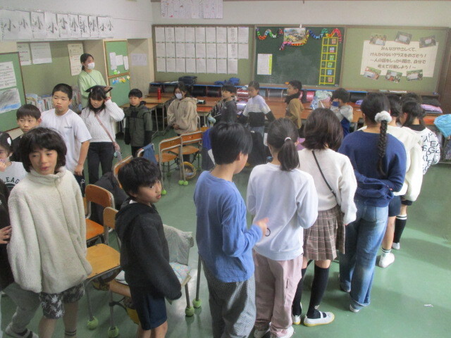 きれいに整列できている様子を遠くから撮影していたら、それに気付いた子たちから「こんにちは!」の明るい声が聞こえてきます。いつも欠かさぬ挨拶が光っている四組の上学年、内面まできれいでよき。