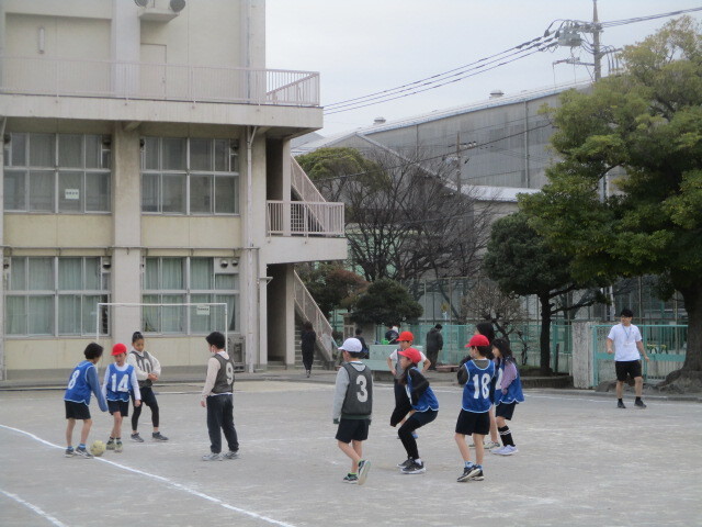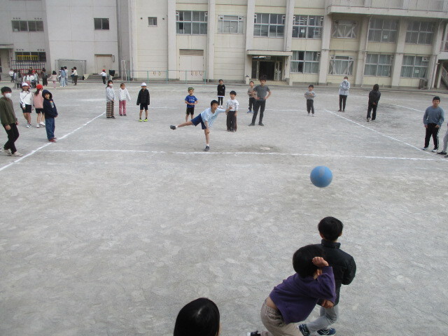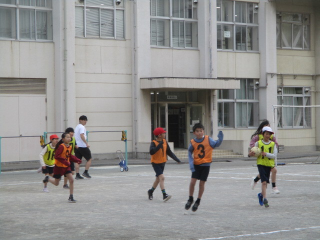 そんな中、1校時は4年生の体育授業が行われていました。元気いっぱい取り組む児童も素晴らしいですが、指導者の半袖&短パンスタイル(画像に写っています)に圧倒される思いです。いつも薄着で過ごしている先生、あっぱれ! プレーはしていなくても、放つバイタリティーが一際キラッキラ!!