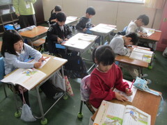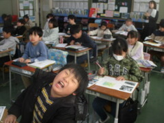 昨日、ALTが急遽お休みになってしまい、いつもはT2(主の先生T1を補佐する立場)で外国語活動の指導に加わっている先生が、T1として重責を務めなければならないという、冷や汗ものの展開が生じたそうです。すると、事情を知ったこどもたちは、いつもの何倍も協力的な態度で授業に臨み、必ずしも堪能ではない英語に悪戦苦闘しているT1を応援してくれたとのこと。その先生は、とても喜んでいらっしゃいました。気が利いてるお助けに感謝!ですね。(画像はなし)