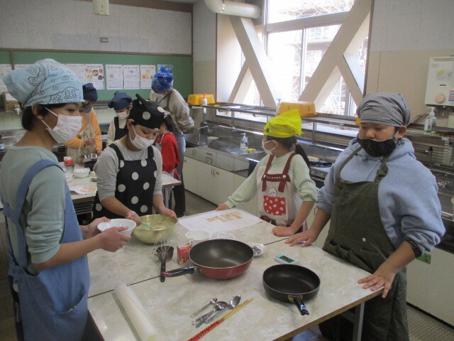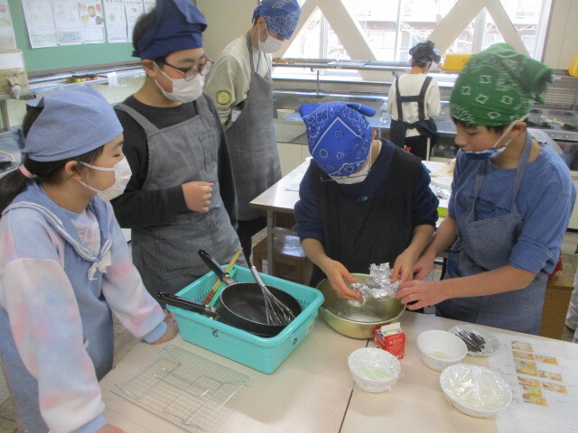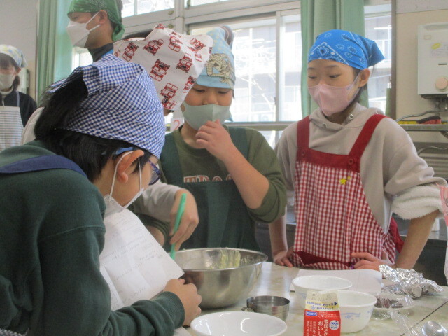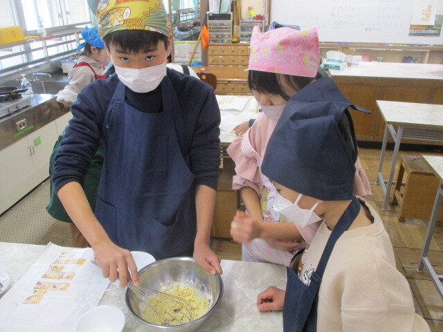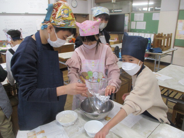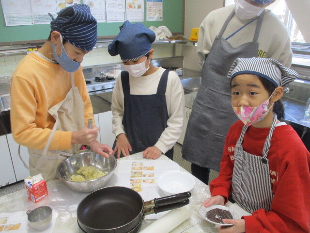 クッキーの生地作りを行っている様子です。このあと焼きあげて、手作りクッキーを食べるのが楽しみですね。