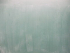 当時、カメラマンが担任になった初日、確かにそのコツを実演して見せたことを覚えています。よくぞ忘れずにいてくれたものだと感心!! 黒板に目をやると、レクチャーした通り、黒板消しが上から下へとかけられている跡がうっすらと残っていました。(左画像)