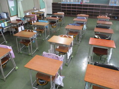 また、机の並びを見ると、きれいに整っていました。毎日、「机の前へ倣え」の取組をやって、習慣化させるようにしていたことが懐かしく思い出されました。(右画像)