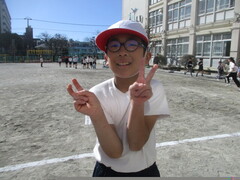 1校時、まだ冷え込みが残る校庭にやって来たのは1年生です。白い体操着が光っています。寒い季節の重ね着を許可していても、こんな薄着で乗り越えてしまうあたり、さすがは風の子ですね。