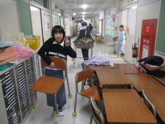 最上級生たちが、新年度や入学式の前日準備で大活躍。机・椅子運び、教室の清掃、会場設営、新一年生の教室飾り等、仕事は多岐に渡りました。