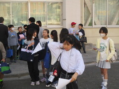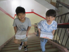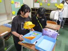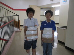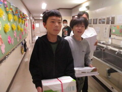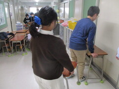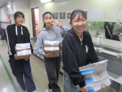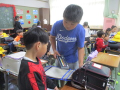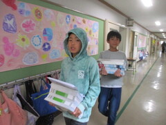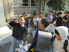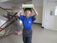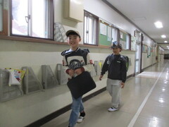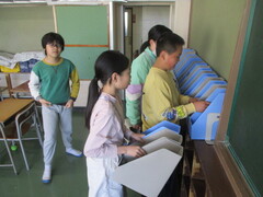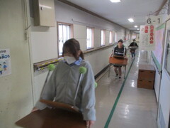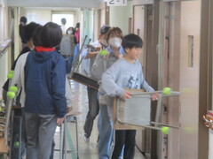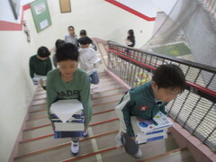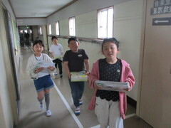 保管場所から教室への運搬係を頼まれた子が多数。張り切っていますねぇ。顔つきがいきいき!