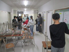 たとえ床に目印のテープが貼っていなくても、こんなに整然と机を揃えられるのですね。(画像では伝わらないでしょうが) 全校トップレベルです。