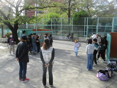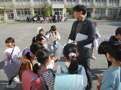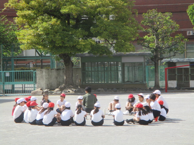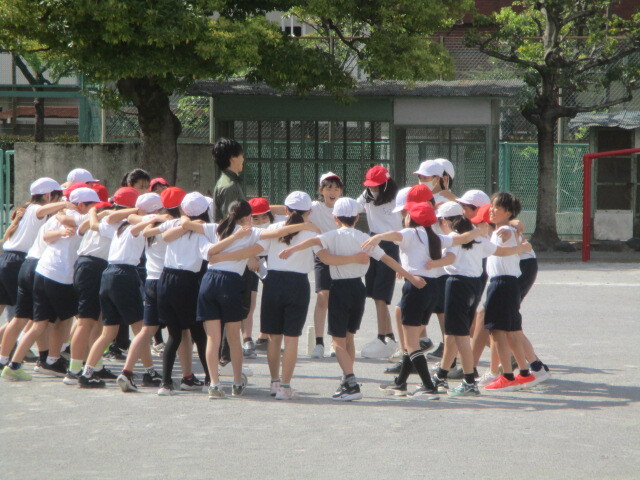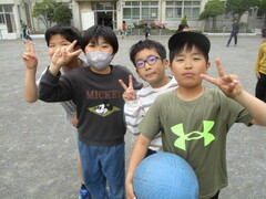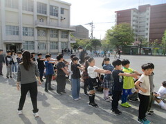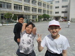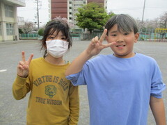 中休み、校庭では新しいクラスの友達や先生と遊ぶ姿が多く見られました。笑顔のお花畑のよう。チャイムが鳴って、教室へ戻るみんなの表情が晴れやかそのものでした。