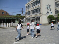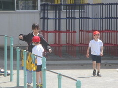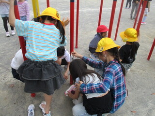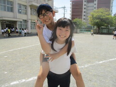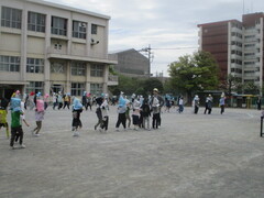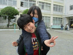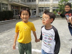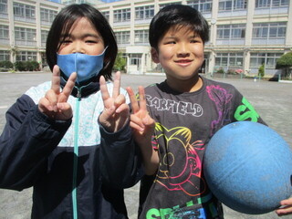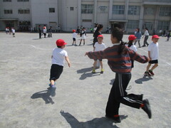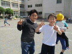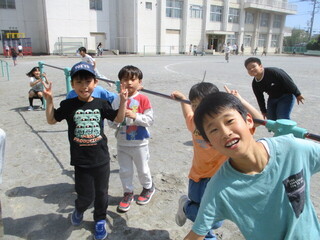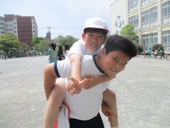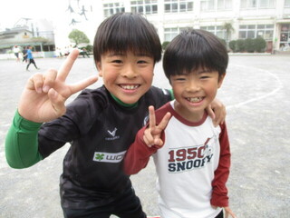 中休みの校庭では、大好きな6年生のお兄さんやお姉さんと一緒に遊ぶ姿が、たくさん見られました。お互い嬉しそうですし、楽しそう。