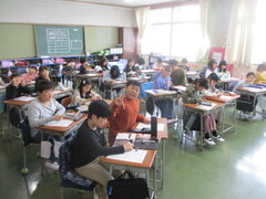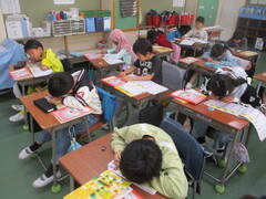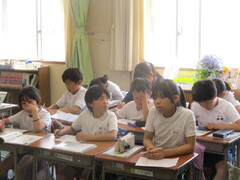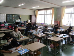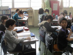 直前までリラックスして過ごしていたのに、号令がかかった途端、キリッと雰囲気が引き締まり、姿勢が見事な学習態勢に。見よ、この立派な4年生を!(画像参照)