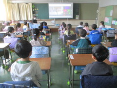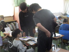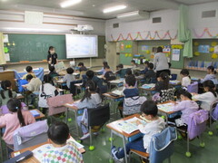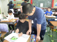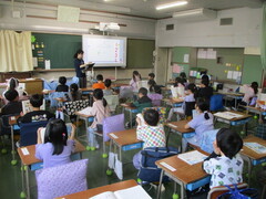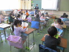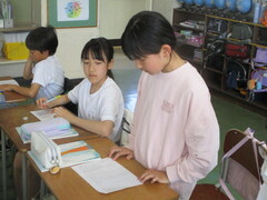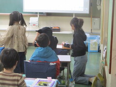 画像は、2年生の様子です。普段の授業と違い、アットホームな感じが心地よいのか、こどもたちは人数の少ないグループに入れると喜ぶのですよ。