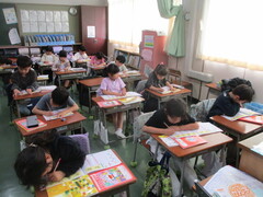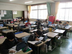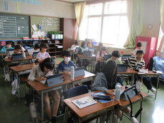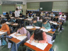 4年生は2クラスとも、課題が与えられており、落ち着いた態度で取り組めていました。上学年の仲間入りを果たしただけのことはある!