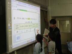 学力の向上を図っていく上で、本校では算数科の指導に重きを置いています。全学年において2クラスを解体し、より少人数グループで学習できるよう体制を整えています。児童はきめ細やかな指導を受け、学ぶ楽しさや面白さを感じながら、達成感を得る場となっています。今日も先生から褒められていましたね。