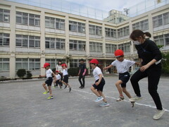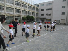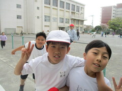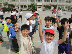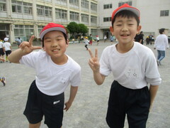 校庭での体育組は元気いっぱい!