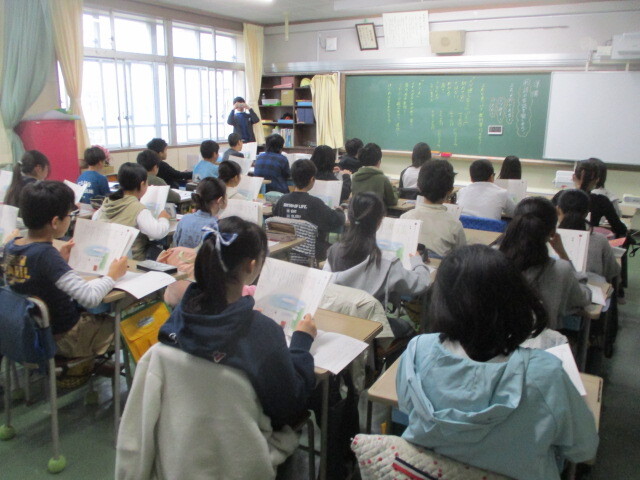 文字を書く際の姿勢について再確認していた3年1組。