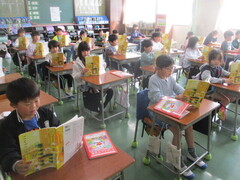 学校図書館の本棚ではありません。各教室の学級文庫の様子です。