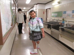 6年生は視力検査です。少人数グループが、保健室へ向かっているところを遠くから見かけました。まるでクラス全員で移動しているかの如く、いつも通り整列し、右側歩行。先生の付き添いがなくても、規律正しい行動できるのがNiceすぎる!(担任は教室で残りのメンバーを指導中のため) 5学年時、学年で訓練してきたことが実を結んでいるのです。早速、接近してシャッターを切りました。
