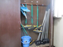 靴箱だけが整然としているようでは残念です。靴揃えのおかげで、掃除用具ロッカーもご覧の通り!