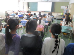 ダラダラではない、シャキッとした挨拶が快い。全員が集中して授業が始まりました。気持ちの切り替えをするきっかけにもなっていることが、手に取るように分かります。