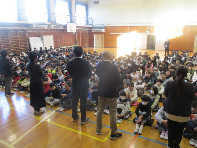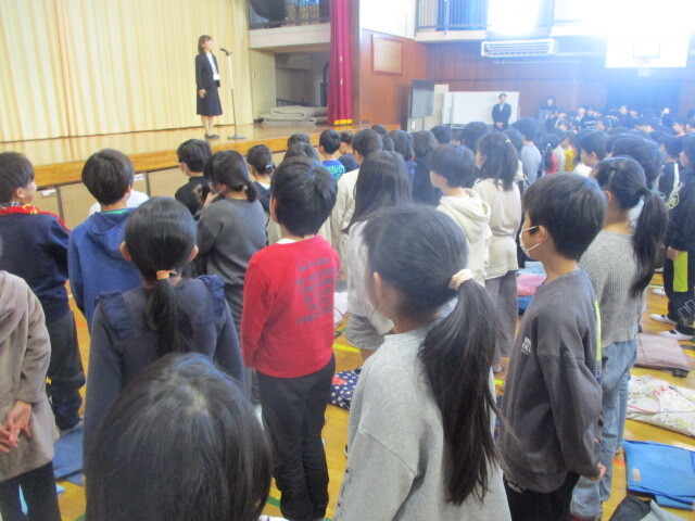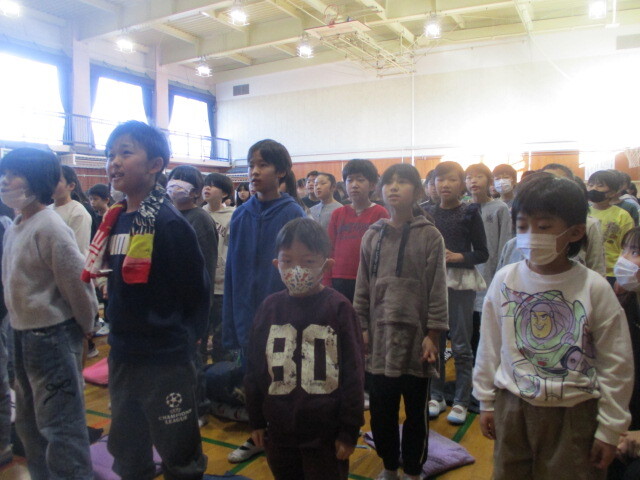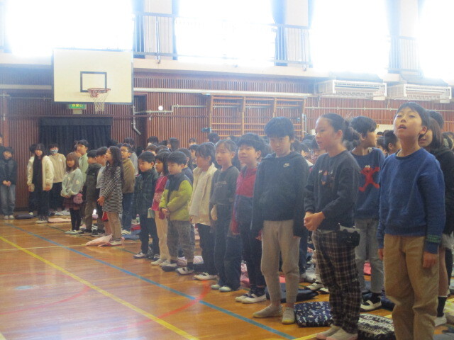 集合の段階から、こどもたちの顔つきや態度が違いました。教室から立派な態度で移動してきたのが一目瞭然です。廊下ではペチャクチャおしゃべり、体育館に入った瞬間にカッコつけたところで、浅はかさは露呈するものです。