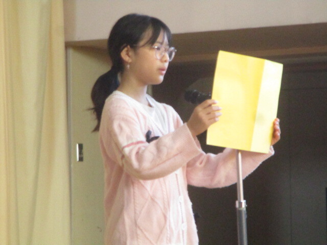 いじめについて考える時間がありました。代表委員による投げ掛けであり、一人一人がしっかりと胸に刻んでおくべき大切なことが、改めて確認されました。