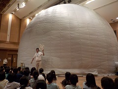 本日、4年生は「プラネタリウム教室」がありました。池上会館に設置されたエアードームの中に入って、月や星の動き、星座についてを星空を眺めながら学習しました。普段はなかなか見ることのできない満点の星空の映像に「おおー!」と歓声が上がる場面もありました。