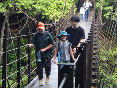 伊豆高原につきました。お天気にも恵まれ、自然の中の空気がおいしいです。鳥の鳴き声も聞こえてきます。学校別行動で、城ヶ崎海岸のつり橋までハイキングに行きました。つり橋からの眺めも最高です。つり橋のゆれも楽しみながら、一人ひとり橋を渡りました。