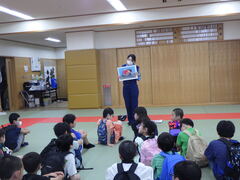 月に1回ですが、こどもたちは、どんな本を読んでもらえるんだろうと、この時間を楽しみに待っています。今日も保護者の方が来てくださる前に、教室の場を整えて待っていました。最後は、感想を話し、お礼を伝えています。よむよむクラブの皆さん、これからもどうぞよろしくお願いします。