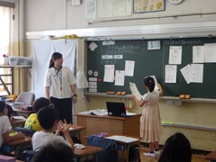 今日は4年生の発表です。「花火」「夏の合唱団」「ふうりん」夏をイメージする詩の発表でした。教室では、それぞれの詩のよさを交流していました。