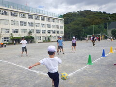 4年生のティーボールの様子です。なかなかバットに当たらなかった児童も慣れてきたようで、ボールの中心をねらってバットを振れるようになりました。感心したことは、守備です。打つ人によって、守る位置を変えたり、声を掛け合ったりして、アウトにするための作戦を考えて守っていました。自然に声をかけあえる温かい雰囲気を感じました。