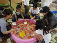 なかよし班で、どのようなお店を運営するか話し合い、準備し、今日のおまつりの日をむかえました。どのお店も工夫され、楽しめるものばかりでした。運営では、一人一人が役割を把握し、自分の役割や責任を果たしていました。何よりもペアで仲良くお店を回っていたのが印象的でした。6年生の企画・運営力が発揮され、安全で楽しいたてわり班活動になりました。