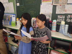 国際交流の会では、外国の方を招待し、日本や住んでいる池上の魅力を伝える活動をします。外国の方に自分たちが伝えたい日本の行事や文化、名所、スポーツなどについて、伝える内容を考え、簡単な語句や基本的な表現を用いて話すことが最終目標です。子供たちは、当日にむけて、お互いの発表を聞き、アドバイスをし合う活動をしました。魅力を伝えるために、スライドを用意するとともに、相手に伝わるように話すにはどうしたらいいか考え、よりよい発表にしていこうとする姿がありました。