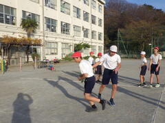 今日の体育は、3分間走、ラジオ体操、長縄跳びと進んでいきました。最高記録が出るよう跳び方を工夫しながら協力して取り組んでいました。後半はボールゲーム「ドッチビー」です。ルールを守り楽しくゲームを進める姿がありました。