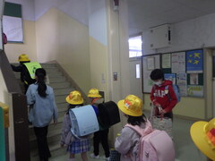 今年初めての避難訓練でした。事前に防災頭巾の被り方や廊下への整列の仕方をクラスごとに確認していました。今日は、本部を変えての集合でしたが、思ったよりはスムーズに避難できました。目標は5分、「おかしも」の約束を守り、速やかに避難できるようにしていきます。