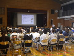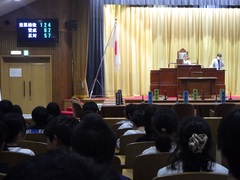 委員長から活動内容の紹介があり、どの委員会も一生懸命取り組んでいる様子がよく伝わってきました。今後の活動にも期待が高まります。下級生の聞く態度もよく、よい集会になりました。