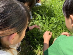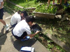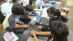 校庭や中庭で春探しです。虫を探したり、めずらしい木々を見つけたり、タブレットに記録していました。わからないものは、その場で調べるなど、タブレットを自由自在に使う3年生でした。