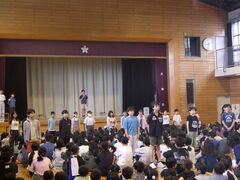 全校児童体育館に集まって、1年生を迎える会を行いました。池上小学校のいいところを伝えたり、池上小学校の先生クイズがあったり、各学年工夫を凝らした出し物がありました。みんなで歌を歌って1年生にプレゼントしました。体育館が暖かな雰囲気になりました。