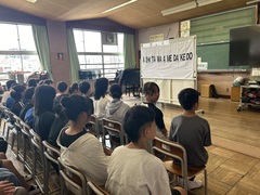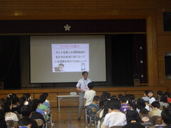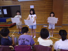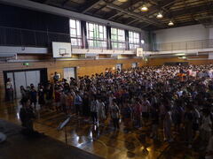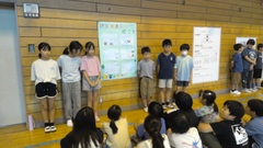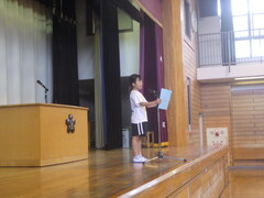 終業式では、3年生代表児童が1学期に頑張ったことを堂々と発表しました。校長先生からは「目標や夢をもち努力を続けることが必ず力になること」「やってみようと思ったその一歩が成長につながる」という話がありました。子供たちは真剣な表情で耳を傾けていました。安全に気を付けて、充実した夏休みを過ごしてほしいと思います。