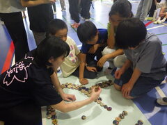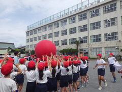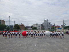 運動発表会に向けて、3時間目に1、3、6年生合同で大玉送りの練習をしました。練習をするうちに少しずつ大玉がスムーズに動くようになってきました。2,4,5年生は、23日に練習する予定です。