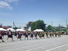 明日は雨予報なので、今日が校庭で練習できる最終日となりました。体操着は洗濯中なので私服でしたが、6年生は気にすることなく演じる姿に気合が感じられました。4年生はついに笠に花と鈴が付き、花笠が完成。どの学年も本番が楽しみです。