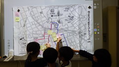 1年生を案内するための準備をしています。先生方からインタビューした内容を1年生に伝わるよう原稿をつくったり、伝える練習をしたりしました。