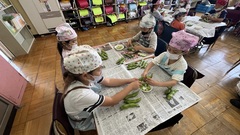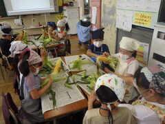 7月4日(金曜)2年 とうもろこしの皮むき体験