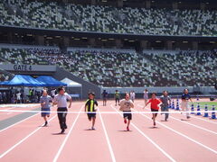 50m走にチャレンジ。スタートからゴールまで力いっぱい走りきる姿がとても輝いていました。