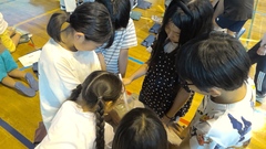 今日の全校朝会では、5年生伊豆高原移動教室の振り返りと代表委員会「運動発表会のスローガン発表」がありました。堂々と話す代表児童の姿を見て、表現力が育っていると感じました。全校競技「大玉送り」の練習も、心ひとつにして大玉を送ろうということを意識して、一生懸命取り組んでいる姿がありました。作戦を立てながら、本番を迎えます。お天気は祈るのみです。