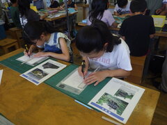 「左」と「右」の違いを全体で確認し、筆順と字形の関係に気を付けて書きました。集中して、一画一画丁寧に描く様子が見られました。