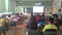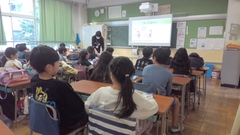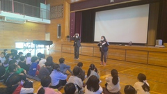 朝の時間に1・2・3・4年生の各教室で「よむよむクラブ」のボランティアの方々に読み聞かせをしていただきました。ボランティアの方々の柔らかな語りに引き込まれて、絵本をのぞき込むようにしてお話の世界に浸っていました。穏やかな一日のスタートを切ることができました。