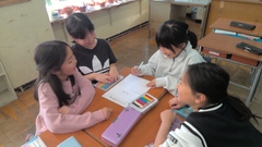 新学期がスタートし、新しい係での活動が始まりました。係活動は、学級のみんなが楽しく過ごせるように、学級での生活が盛り上がるように、係ごとに内容を考えながら活動しています。活動内容について、友達と楽しそうに話し合う姿が見られました。