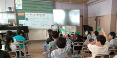 1年生の算数科の「たしざんとひきざん」の学習で、Chromebookを活用した授業を行いました。問題文を図に表す際に、「オクリンクプラス」という協働学習支援ソフトを使い、子供たちは考え方を共有しました。クラス全員の様々な考え方や、図の書き方に触れることで学習を深めていました。