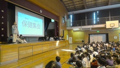朝の時間に、保健委員会集会が行われました。保健委員会の仕事内容の説明とこれからの季節に流行する感染症をはじめとする風邪予防について説明がありました。スライドを示しながら、どの学年にも分かりやすい内容でした。しっかりと風邪予防をして、学校生活を元気に楽しく過ごしてほしいです。