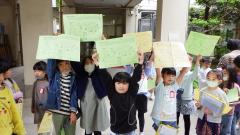 2年生が手作りをしたかわいい鯉のぼりを 「呑川こいのぼり大会」に出品しました。霊山橋から妙見橋の間を、色とりどりの鯉のぼりが、元気いっぱい泳いでいます。近くを通る際は、ぜひ見てください(5月2日~7日まで)