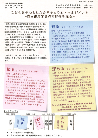 当日大田区教委を通じての申込者及び事前申し込みの方は「受付」にて所属・名前を申し出てください。